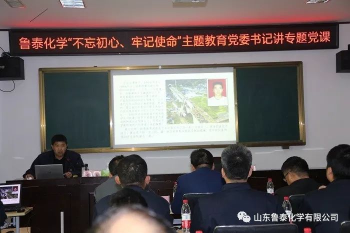 按照公司“不忘初心、牢记使命”主题教育实施计划,11月7日,鲁泰化学党委书记、董事长张玉标以《担当为要 实干为本 奋斗为荣 以一流业绩全力开创高质量发展新局面》为题,为公司全体党员、入党积极分子上了一堂生动的主题教育党课,高点位推进公司主题教育走深走实。集团公司第一巡回指导组副组长、党校副校长刘岭以及巡回指导组成员、工会办公室主任胡伟、政治工作部副主任王来文、纪检监察室业务主管刘涛到会指导。鲁泰化学党委副书记、纪委书记、工会主席王端焕主持党课。
