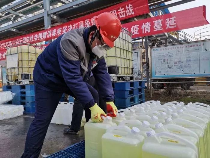1月26日起,鲁泰化学主动向鱼台周边县区无偿捐赠次氯酸钠消毒溶液,并覆盖济宁各县市区。截止1月31日,公司以各种包装形式,全力保障周边群众对消杀用品的需求。公司总经理李宝瑞介绍,公司严格按照GB19106-2013相关要求进行生产,确保每批次都是优质产品。