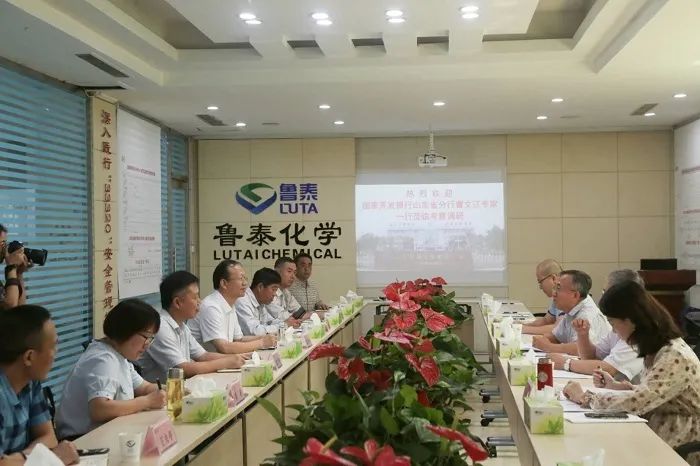 9月2日上午,国家开发银行山东省分行高级专家曹文江、评审处副处长谷海、客户三处副处长朱磊以及山东大众网记者等一行6人到鲁泰化学考察调研并座谈交流。鱼台县财政局副局长田广河、集团公司党委书记、董事长李合军,财务部经理邢善,鲁泰化学党委书记、董事长张玉标,党委副书记、总经理李宝瑞等陪同考察调研。