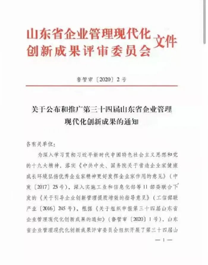 近日,山东省最具行业权威性和指导性的管理类创新项目评选活动——第三十四届山东省企业管理现代化创新成果评选结果揭晓。鲁泰化学公司申报的《基于绿色制造的全过程控制清洁生产体系建设》凭借全新的绿色制造创新思路、健全的清洁生产管理体系、独特的全过程控制实践措施、突出的创新实践效果,在全省1200余项创新成果中脱颖而出,被评为一等奖。