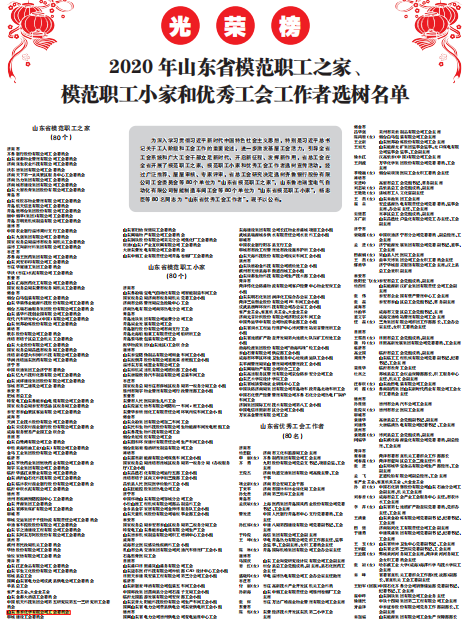 “山东省模范职工之家”评选是为深入学习习近平新时代中国特色社会主义思想,特别是习近平总书记关于工人阶级和工会工作的重要论述,进一步激发基层工会活力,引导全省工会系统和广大工会干部立足新时代、开启新征程、发挥新作用,省总工会决定在全省开展模范职工之家、模范职工小家和优秀工会工作者选树宣传活动。经过广泛推荐、层层审核、专家评审,省总工会研究决定选树山东鲁泰化学有限公司工会委员会等80个单位为“山东省模范职工之家”荣誉称号。