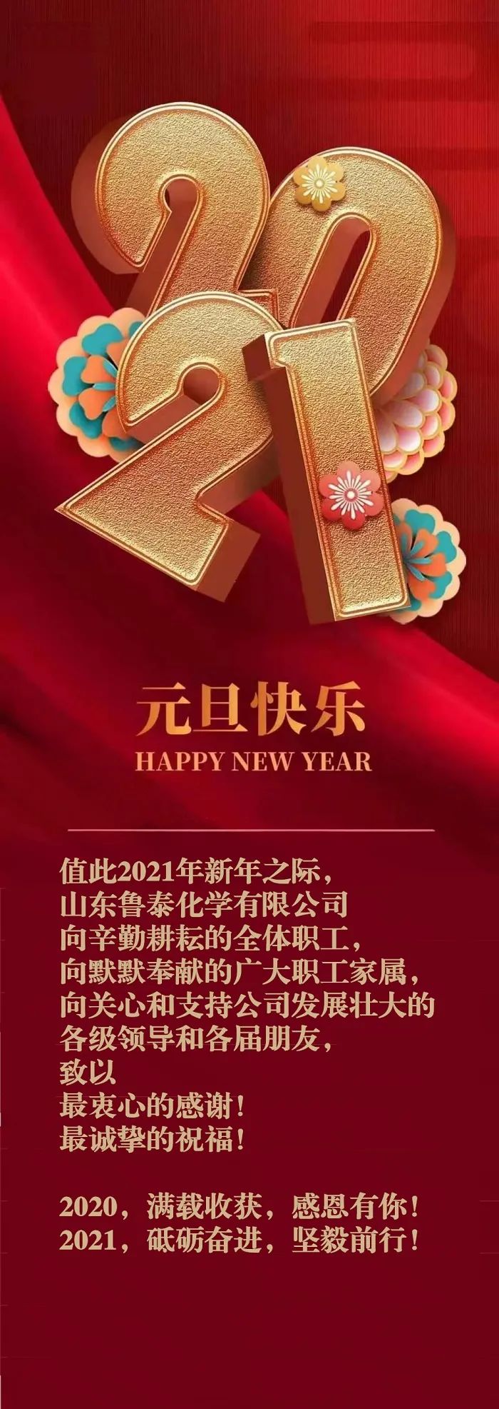 值此2021年新年之际,山东鲁泰化学有限公司向辛勤耕耘的全体职工,向默默奉献的广大职工家属,向关心和支持公司发展壮大的各级领导和各界朋友,致以