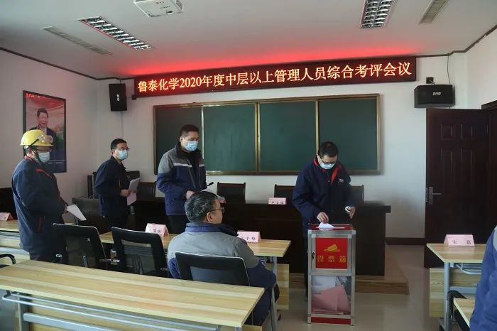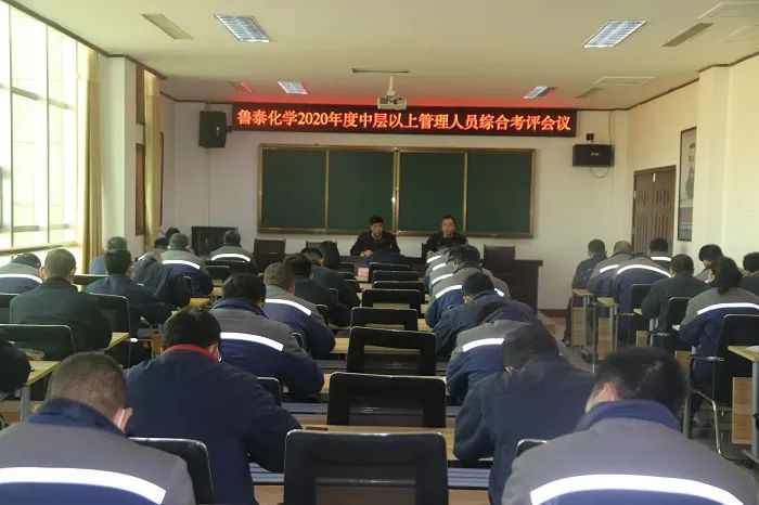 1月8日,鲁泰化学在行政楼四楼员工培训中心教室召开2020年度中层以上管理人员综合考核评价会议。党委书记、董事长张玉标主持会议并讲话。公司班子成员、中层以上管理人员近60人参加会议。
