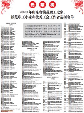近日,在山东省总工会开展的全省模范职工之家评选中,山东鲁泰化学有限公司工会被授予“全省模范职工之家”称号。该称号是全省工会系统表彰先进集体的最高荣誉,也是山东省 ...