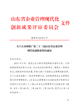 近日,山东省范围内最具行业权威性和指导性的管理类创新项目评选活动——第三十三届山东省企业管理现代化创新成果评选结果揭晓。鲁泰化学公司申报的《基于中央控制中心的全域 ...
