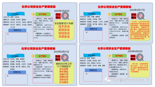 p/p 为强化生产安全日常管理,落实集团公司年度总结表彰会议精神和一流企业创建有关要求,化学公司创新实施安全生产电子看板对每日生产动态进行监管,每日早上发布到微信工作群,一段时间 ...