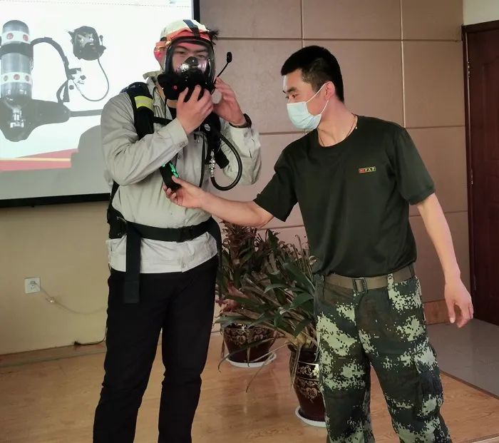 此次主题团日活动分为三个方面的内容,一是重温了共青团从诞生、发展到辉煌三个阶段的历史,讲述了五四运动故事,领会了团徽和团旗的象征意义,在团支书的带领下全体起立重温了入团誓词。二是深入学习领会了习近平总书记五四寄语精神,坚定理想信念、站稳人民立场、练就过硬本领、投身强国伟业。三是按照公司应急救援管理月活动要求,邀请应急救援队张文峰同志对消防应急器材--正压式空气呼吸器的操作使用方法进行了讲解示范,并让与会同志亲自试穿。