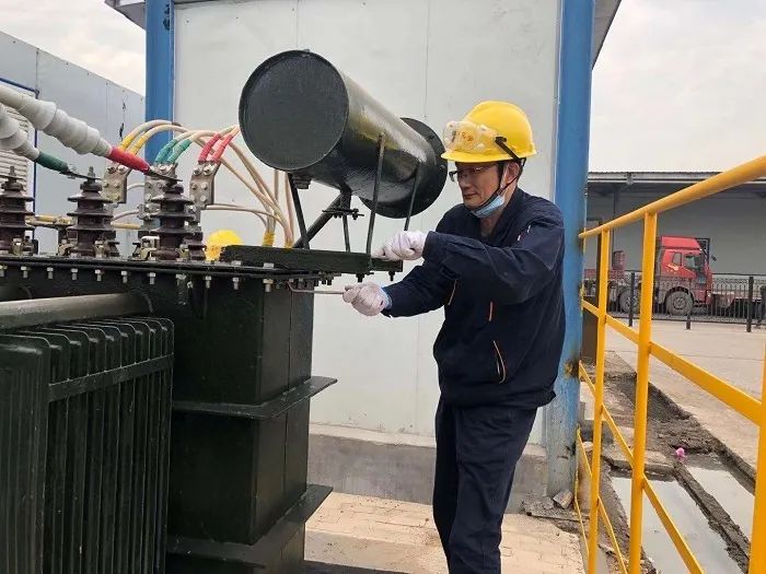 近日,电仪车间电气运行人员在日常巡检中,发现发碱区临时变压器有渗油现象,接到报告后,车间技术员袁宁第一时间赶到现场,经查看分析,渗油现象是因变压器受外界环境温差影响,绝缘子密封圈松动造成,需要停运变压器进行处理。