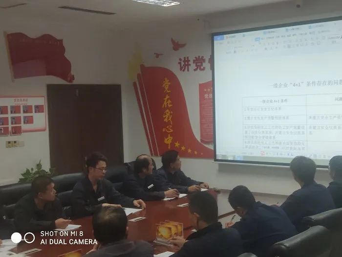 会上,车间安全员首先对安全生产标准化一级企业“4+1”条件、否决项清单、重大隐患清单、问题清单,对查出问题隐患进行归类、责任划分,诊断评估结果等内容逐条进行了解说。随后,与会人员对各自责任范围内的问题隐患提出整改意见。
