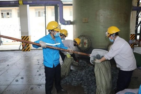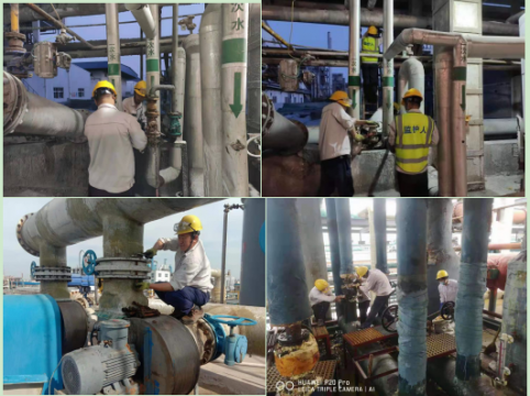p/p 检修工作正在有序的进行中,骄阳下,参加检修的工友们挥汗如雨,克服天气炎热、空间受限,时间紧、任务重等各种不利因素,夜以继日,加班加点,并肩作战,顽强拼搏,确保检修工作安全 ...