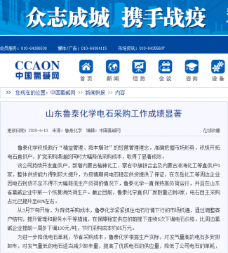 4月10日,我国氯碱行业权威门户网站——中国氯碱网,在新闻专栏刊发了鲁泰化学张宁撰写的题为《鲁泰化学电石采购工作成绩显著》的文章,对鲁泰化学积极践行“精益管理、降本增 ...
