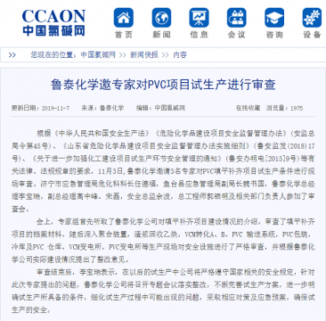 11月7日,我国氯碱行业权威门户网站——中国氯碱网,在新闻专栏刊发了鲁泰化学杜海波撰写的题为《鲁泰化学邀专家对PVC项目试生产进行审查》的文章,对鲁泰化学邀专家对PVC项目试 ...