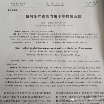 9月15日,国家级新闻媒体《氯碱工业》第55卷第9期,在企业管理动态专栏发表了鲁泰化学金鑫、康艳、王加峰、张志同撰写的题为《氯碱生产管理与废水零排放总结》的文章,对鲁泰化 ...