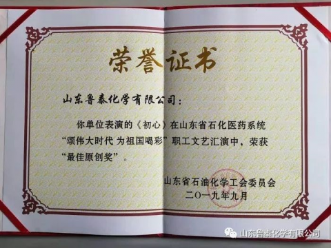 为隆重庆祝新中国成立70周年,9月25日,全省石化医药系统“颂伟大时代 为祖国喝彩”职工文艺汇演在鲁南制药集团新时代药业公司拉开帷幕。鲁泰化学选送的情景剧《初心》赢得了省 ...