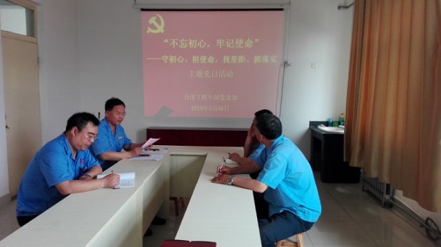 近日,公用工程车间党支部组织支部全体党员开展“不忘初心 牢记使命—— 守初心、担使命,找差距、抓落实”主题党日活动。副总经理高中峰以普通党员身份参加活动。 会议首先学习 ...