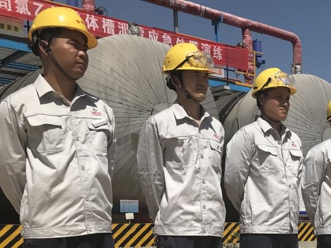 为了有效应对突发氯气泄漏事故,提高员工应对突发事故的能力, 5月24日上午,氯碱车间氯氢处理工段开展事故氯装置风机处氯气泄漏应急演练。 此次演练从实战角度出发,模拟事故 ...