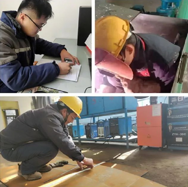 维修人员的工作劳动强度很大,许多楼层里的设备需要拆解后由人力抬下来。每当问他们累不累时,他们会说:“不累,为了企业安全生产、稳定发展,累也是值得的。”大家可别以为他们的日常工作只是这些粗糙的体力活,像双面机封调试、工艺管道计算数据,填写检修作业单这些细活,他们也能高标准的完成。