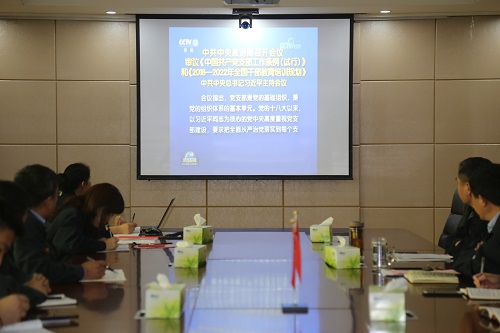 会议集中观看了《中共中央政治局召开会议审议<中国共产党支部工作条例>(试行)和<2018-2022年全国干部教育培训规划>》的视频资料。党委副书记、总经理李宝瑞带领学习了《中国共产党支部工作条例》(试行)的全文内容。
