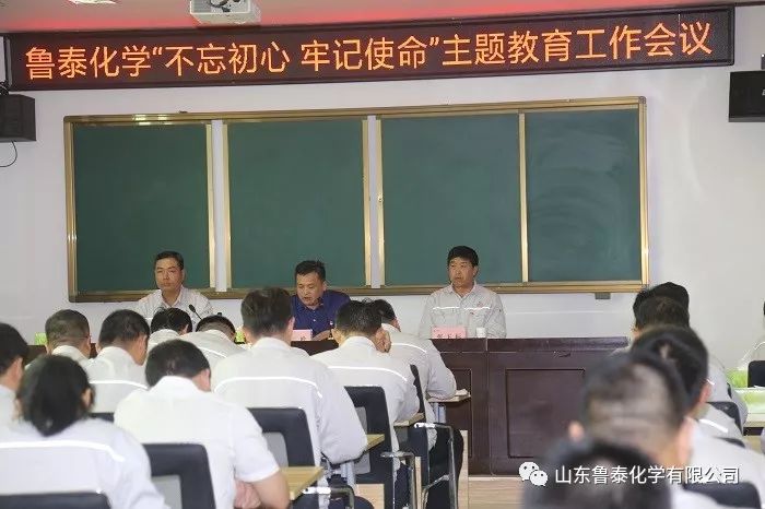 9月16日下午,鲁泰化学召开“不忘初心、牢记使命”主题教育工作会议。为深入学习贯彻习近平新时代中国特色社会主义思想,结合公司实际,会议对主题教育进行了安排部署,并动员公司各基层党组织和广大党员重温初心、担当使命、砥砺作为,为实现公司高质量发展,为建设一流的现代化化工企业提供强大的精神动力和思想保证。