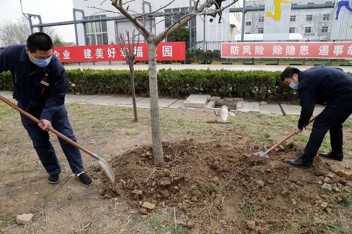 大家有的挖土,有的扶苗,有的填坑,有的挥锹培土,每道工序都一丝不苟,忙碌的身影构成了一道和谐奋进的风景线,充分展现了鲁泰化学干部职工良好的纪律作风观念和扎实的工作作风。