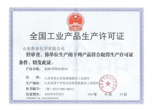 p/p 近日,鲁泰化学为期三个月的 全国工业产品生产许可证 换证工作顺利完成,正式取得了由山东省市场管理局颁发的全国工业产品生产许可证新证书,证书有效期5年。 根据核查要求,2021年全国 ...