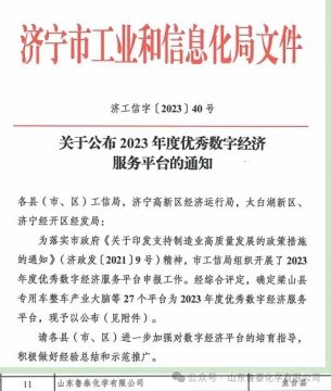 近期,济宁市工业和信息化局组织开展了济宁市2023年度优秀数字经济服务平台评选活动。由 生产部(科技研发中心)提报相关材料,并 经 市工业和信息化局 综合评定,鲁泰化学被评为2023年度优 ...