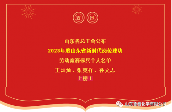 近日,山东省总工会办公室下发《关于公布2023年度山东省新时代岗位建功劳动竞赛标兵个人的通知》,鲁泰化学聚氯乙烯车间王灿灿、维修中心张克祥、电仪车间孙文志,荣获“山东省新时代岗位 ...