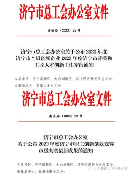 12月26日,济宁市总工会相继公布了《2023 年度济宁市全员创新企业 2023 年度济宁市劳模和工匠人才创新工作室的通知》《2023年度济宁市职工创新创效竞赛市级决赛创新成果的通知》。 鲁泰化学“ ...
