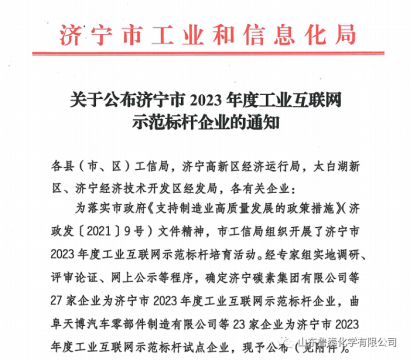近日,济宁市工业和信息化局发布《关于公布济宁市2023年度工业互联网示范标杆企业的通知》,鲁泰化学“智能工厂项目”成功登榜,这标志着鲁泰化学在信息化和工业化融合发展方面迈上了新台 ...