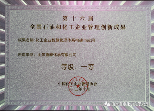 在刚刚结束的第十六届全国石油和化工企业管理创新大会上,鲁泰化学《化工企业智慧管理体系构建与应用》《多元化安全管理体系构建与实践》两项管理创新成果分别获得管理创新成果奖一等奖 ...