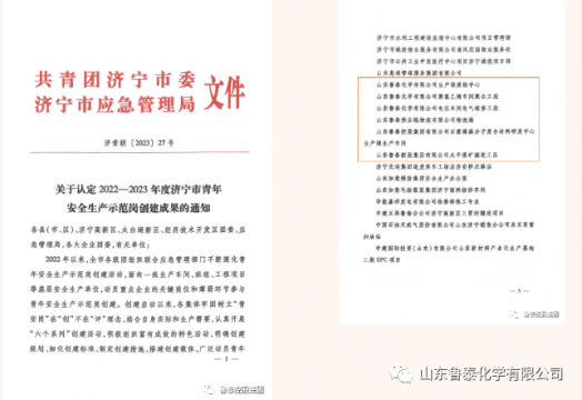 近期,团市委、市应急管理局联合开展了“2022—2023年度济宁市青年安全生产示范岗”创建工作。经组织推荐、资格审查、集中述评、现场核查等环节,集团公司6个集体(鲁泰化学生产部质检中心 ...