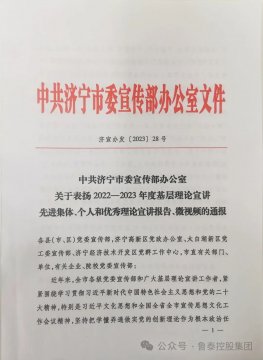 近日,中共济宁市委宣传部办公室发布了《关于表扬2022-2023年度基层理论宣讲先进集体、个人和优秀理论宣讲报告、微视频的通报》,鲁泰控股集团荣获济宁市基层理论宣讲先进集体荣誉称号。 ...