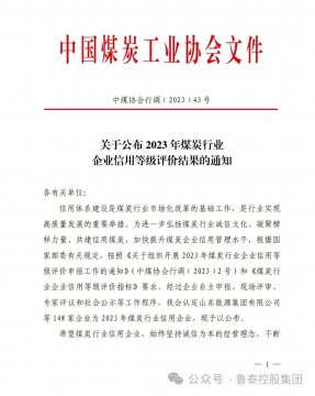 近日,中国煤炭工业协会公布了2023年煤炭行业企业信用等级评价结果,鲁泰控股集团荣获“煤炭行业AAA级信用企业”称号。 信用体系建设是煤炭行业市场化改革的基础,是行业实现高质量发展的 ...