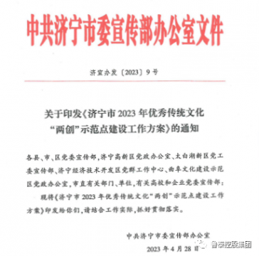 近日,济宁市委宣传部办公室印发《济宁市2023年优秀传统文化“两创”示范点建设工作方案》,鲁泰控股集团被评为济宁市2023年优秀传统文化“两创”示范点。 近年来,集团公司坚持以习近平新 ...