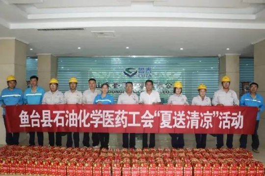 p/p 炎炎夏日送清凉,丝丝关爱沁人心。7月22日上午,鱼台县石化医药工会工作委员会主任郭继凯一行到鲁泰化学开展“夏送清凉”活动。公司副总经理高中峰率党群部门工作人员陪同。 活动中,郭 ...