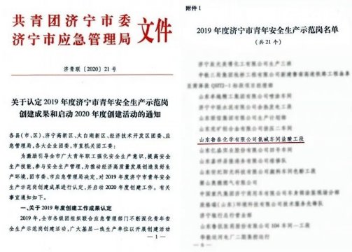 近日,济宁团市委、市应急管理局对2019年度济宁市青年安全生产示范岗创建成果进行认定,鲁泰化学氯碱车间盐酸工段榜上有名,荣获2019年度“济宁市青年安全生产示范岗”殊荣。 ...