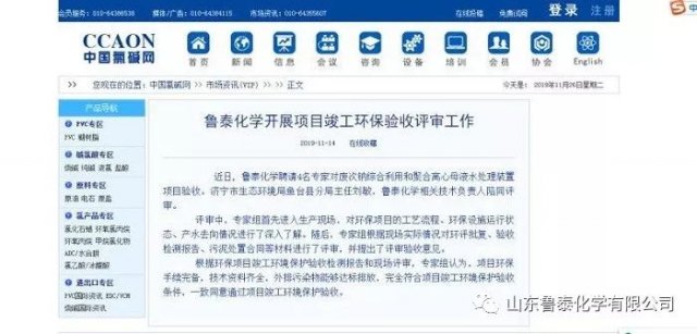 11月26日,我国氯碱行业权威门户网站——中国氯碱网,在新闻专栏刊发了鲁泰化学金鑫撰写的题为《鲁泰化学开展项目竣工环保验收评审工作》的文章,对鲁泰化学项目竣工环保验收评 ...