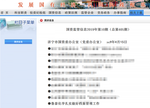 济宁市国资委《国资监管信息》(2019年第10期总第405期)刊发了题为《鲁泰化学扎实做好档案管理工作》的文章,对鲁泰化学扎实做好档案管理工作进行了报道。 该文章从四个方面详细 ...