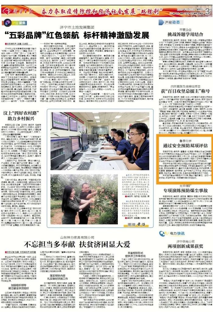 近日,《济宁日报》在产业经济专版中,刊发了鲁泰化学翟鲁波、杜海波撰写的题为《鲁泰化学通过安全预防双向评估》的文章。