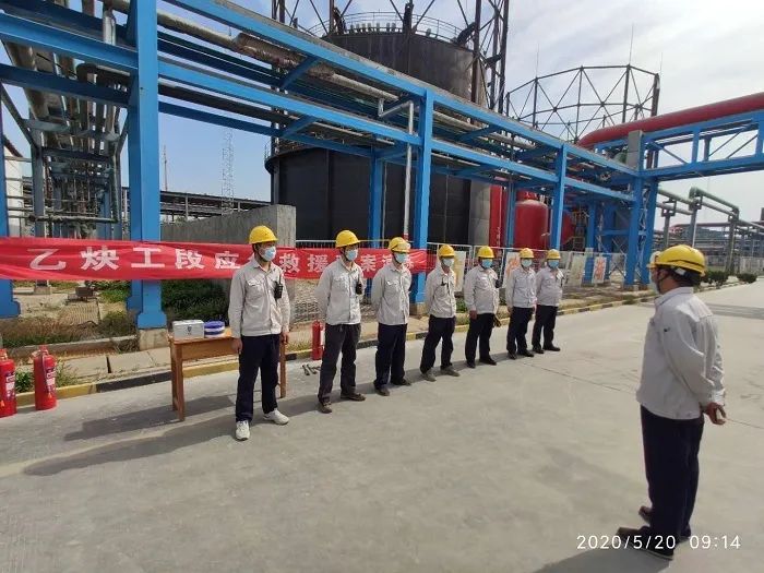 5月20日上午,聚氯乙烯车间乙炔工段针对氢气管道泄漏进行了现场处置方案演练。
