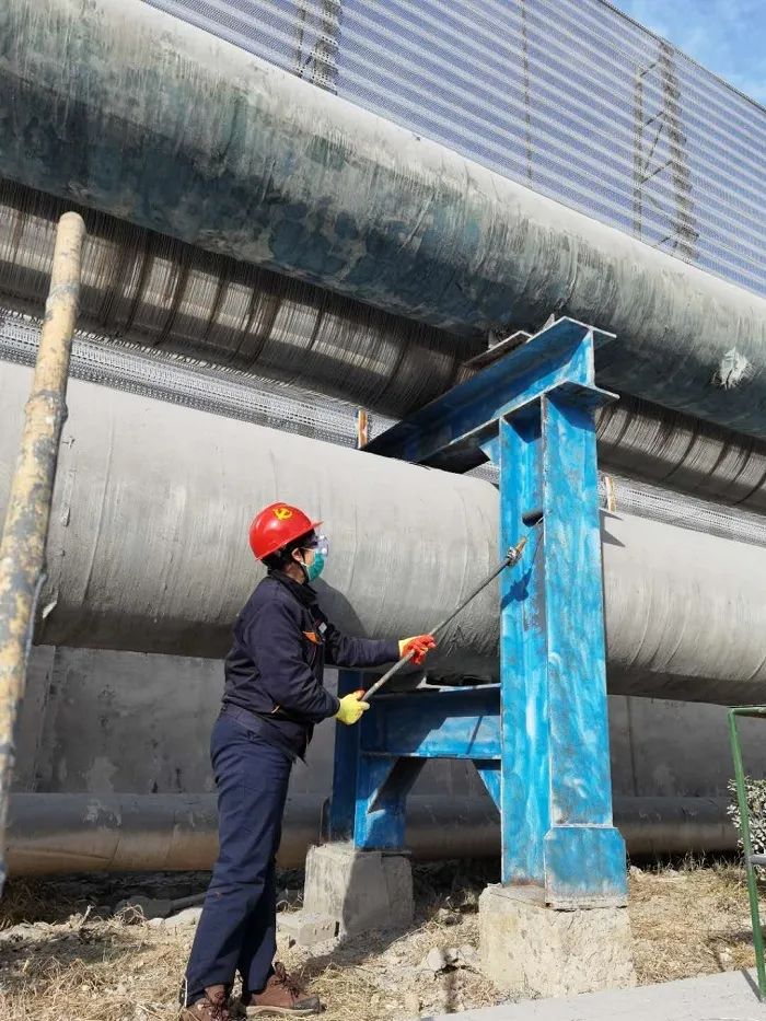 作业开始后,张玉标同大家一起投入到紧张的除锈刷漆工作中,大家充分发扬了齐心协力、埋头苦干的精神,保质保量完成了任务。经过大家的共同努力,除锈刷漆后的管廊管架焕然一新。