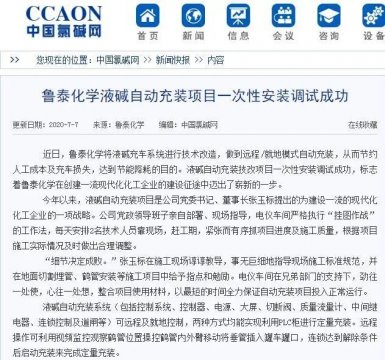 近日,国家级新闻媒体《中国氯碱网》在新闻快报专栏刊发了鲁泰化学马海峰、罗宁虎撰写的《鲁泰化学液碱自动充装一次性安装调试成功》的文章。 文章报道,鲁泰化学将液碱充车系 ...